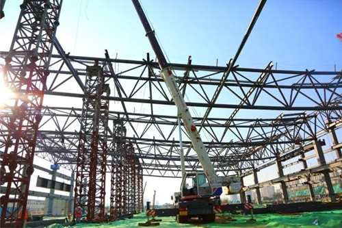 位于項目最南側,最先開工的五號展館主體鋼結構已基本完成。