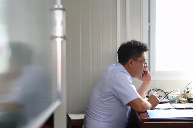 8:50濟(jì)南齊魯黃河大橋建設(shè)指揮部,我們?nèi)缂s見到了趙世超。一進(jìn)入項(xiàng)目部“板房”辦公室,他就立馬打電話安排起了今天的工作,這種工作狀態(tài),早已是他熟悉的工作節(jié)奏。從2001年畢業(yè)開始,趙世超就一直住板房、跟工程,有著17年項(xiàng)目一線工作經(jīng)驗(yàn)的他,是建設(shè)一線一名結(jié)結(jié)實(shí)實(shí)的“老將”。