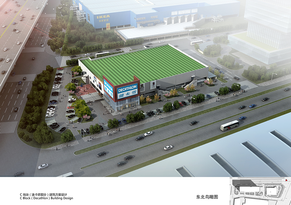 迪卡儂項目總計四層,地上共2層,地上建筑面積約9575平方米,首層使用功能為購物停車,二層功能為超市賣場及辦公附屬用房。地下共2層,為鋼筋混凝土框架結構,主要功能為停車,停車方式是單層停車。停車場總共有三萬多平方米,預計擁有車位1300個,為顧客解決了停車問題。