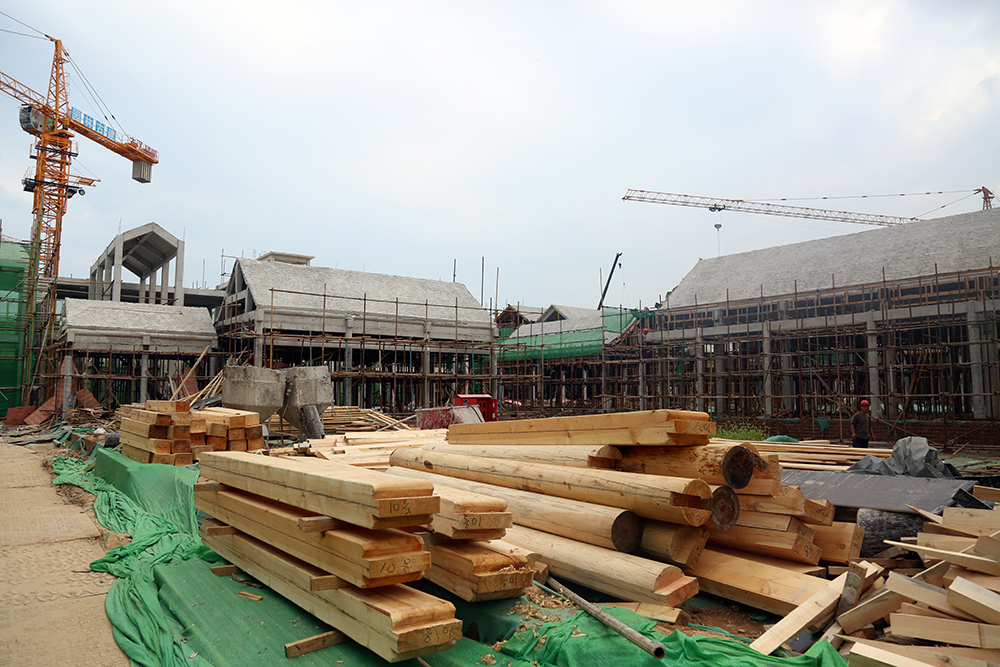 為消防安全考慮,項目建筑的屋頂及大部分構件都摒棄了木質結構,統一采用鋼筋混凝土結構。雖然采用了現代材料,但是施工復雜程度卻比原始工藝大的多。“屋頂的構件要用專門定制的模板逐層澆筑,較長的房梁還要逐段拼接,同時又要保證細節到位,做起來就比較耗時”,現場負責人介紹道。在項目入口處,有一棟小型建筑為全木制結構,據介紹,這棟建筑僅用三天就建造完成,而如果采用鋼筋混凝土結構,至少需要20天工期。