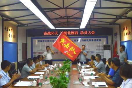 黃河路橋為貫徹落實集團公司關于北園西延項目的各項工作部署和要求,順利完成指揮部制定的目標,先后開展了“奮戰100天,實現新跨越”、“奮戰50天,沖刺北園西”等動員活動。同時,攻堅克難、多措并舉、認真落實標準化建設理念,從施工現場各道工序再到項目部全方位實施標準化建設。