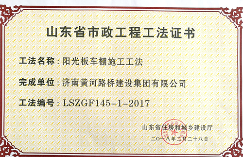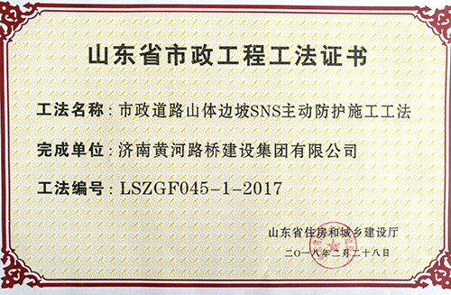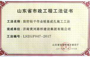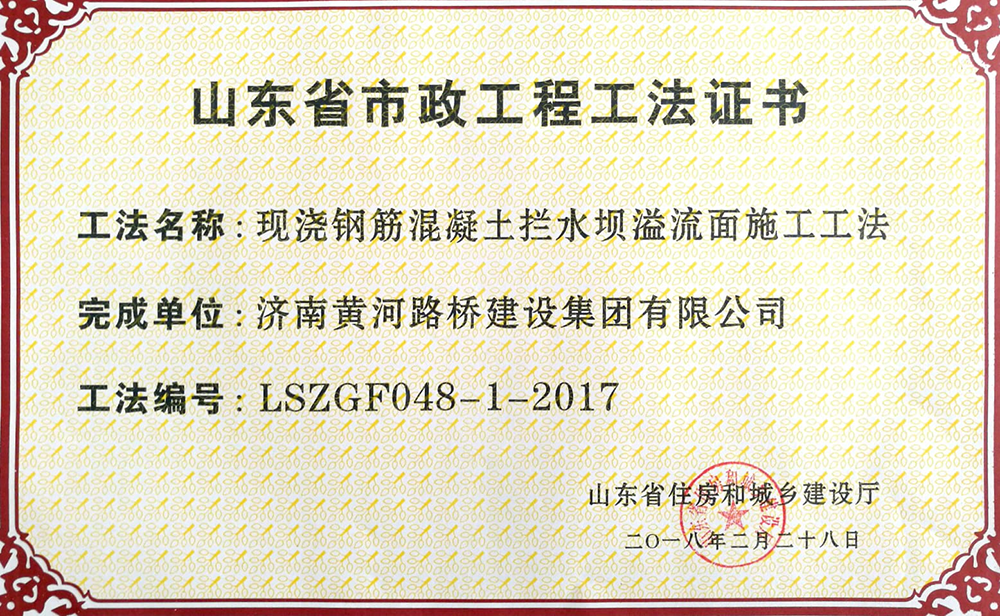 2018年2月28日,濟南黃河路橋建設(shè)集團公司申報的6項工法全部被山東省住房和城鄉(xiāng)建設(shè)廳批準(zhǔn)為山東省市政工程工法。
