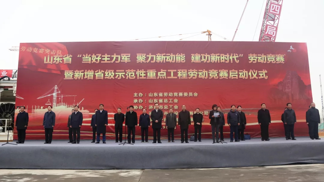 3月29日上午,山東省“當好主力軍、聚力新動能、建功新時代”勞動競賽暨新增省級示范性重點工程勞動競賽啟動儀式在濟南黃河隧道工程現場隆重舉行。省委常委、統戰部部長,省總工會主席,省勞動競賽委員會主任張江汀出席并宣布勞動競賽啟動,省勞動競賽委員會副主任,省總工會黨組書記、常務副主席劉貴堂,濟南市委常委、市總工會主席雷天太出席活動,儀式由省勞動競賽委員會副主任,省人力資源社會保障廳副廳長周春艷主持。