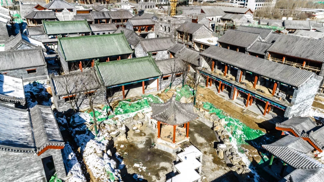 正在建設沖刺中的老濟南街,兼具明清與民國風情的各色建筑韻味初顯,親王府、城隍廟、城門樓、書院、醫院、警察局等各類建筑一目了然,園區氛圍日益濃厚起來,不久的將來,這些場景都將會出現在影視作品中。現場施工負責人表示,現場正在開足馬力搶工收尾,目前園區內共有500余名工人在不同區域,進行各個單體圍墻施工、管道及地面鋪裝、城墻砌筑與熱力等工作,確保4月15日項目主體工程竣工,達到可拍攝條件。