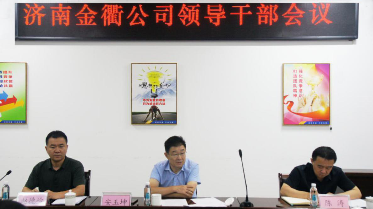 8月21日下午,集團副總經理安玉坤、人力資源部部長陳濤、企業管理部部長趙德嶺一行到金衢公司宣布整合重組通知和干部任免意見,動員全體班子成員統一思想認識,明確行動目標,認真貫徹落實集團各項決策部署,充分發揮表率作用,肩負新使命,實現新作為,譜寫新篇章,以永不懈怠的精神狀態和一往無前的奮斗姿態為金衢公司高質量發展做出積極貢獻。金衢公司黨總支書記、董事長張建,總經理馮子強等領導班子成員參加會議。會議由金衢公司總經理馮子強主持。