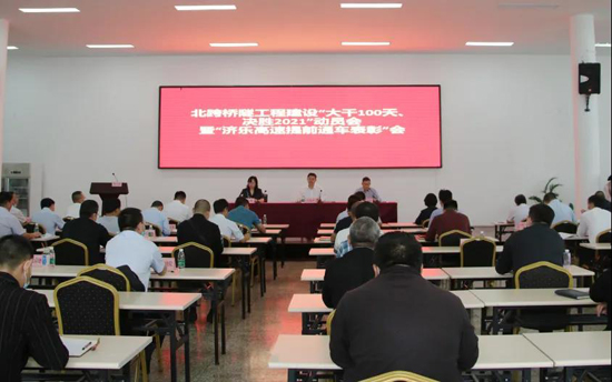 會上,許為民宣讀了濟樂高速表彰決定,集團領導向獲獎單位頒發獎狀;工程三部負責同志宣讀了“大干100天,決勝2021”會戰實施方案;各項目參建單位逐一作了表態發言。