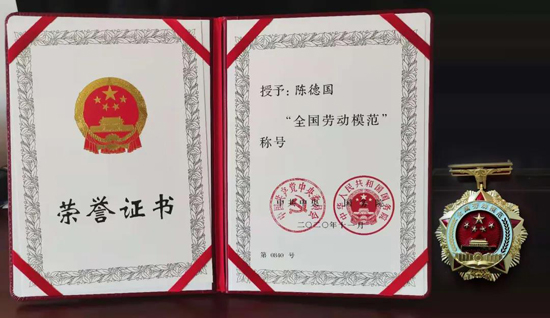 2017年,陳德國獲得濟南市勞動模范稱號,2018年獲得山東省勞動模范稱號,2020年11月24日,陳德國在北京人民大會堂接受表彰,獲得全國勞動模范稱號。對于榮譽,陳德國說:“我就是一個地地道道的農(nóng)民,從小對土地有很深的感情,就想踏踏實實種好地,干好本職工作,榮譽是大家共同努力的結(jié)果,對我個人是一種動力,我想能借助集團平臺,為食品安全和綠色農(nóng)業(yè)發(fā)展做點力所能及的事情。”