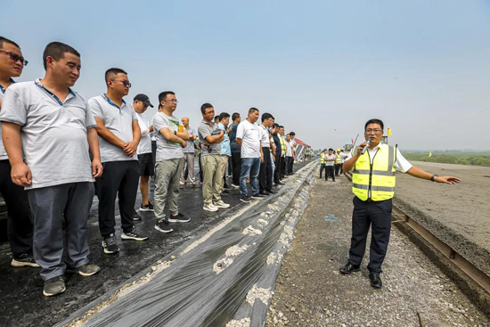 8月10日,濟(jì)南城市建設(shè)集團(tuán)所屬濟(jì)南金曰公路工程有限公司組織召開3D水穩(wěn)基層施工觀摩交流會,觀摩會邀請省市公路、交通、市政系統(tǒng)的行業(yè)主管部門、施工單位、設(shè)備商、科研機(jī)構(gòu)參加。