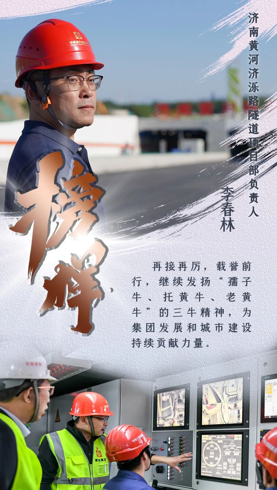 “這份榮譽(yù)屬于每一位跨黃橋隧建設(shè)者”,李春林說:“作為一名黨員,在集團(tuán)黨委的堅強(qiáng)領(lǐng)導(dǎo)下,在黨支部的引領(lǐng)下,在全體參建人員團(tuán)結(jié)奮戰(zhàn)和共同努力下,我們完成了一次又一次建設(shè)任務(wù),攻克了一個又一個技術(shù)難題,實(shí)現(xiàn)了一個又一個節(jié)點(diǎn)目標(biāo),這是我既難忘、又寶貴的經(jīng)歷,再接再厲,載譽(yù)前行,我將繼續(xù)發(fā)揚(yáng)‘孺子牛、拓荒牛、老黃牛’的三牛精神,為集團(tuán)發(fā)展和城市建設(shè)持續(xù)貢獻(xiàn)力量。”