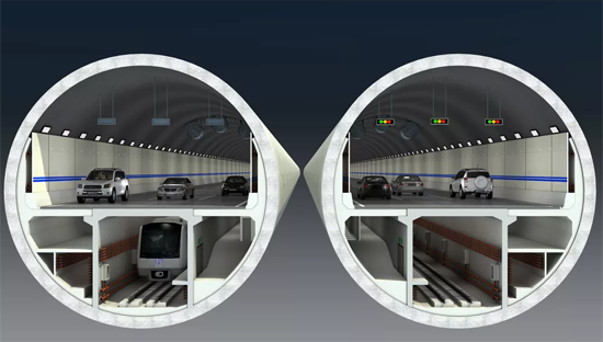 項(xiàng)目提出了雙道防淹門解決方案,以實(shí)現(xiàn)全方位有效封堵,保護(hù)城市安全。為拓展城市空間,濟(jì)南黃河隧道設(shè)計(jì)為城市市政道路和軌道交通合建方案,實(shí)現(xiàn)隧道空間最大利用率。“萬里黃河第一隧”設(shè)計(jì)為雙管雙層公軌合建盾構(gòu)隧道,上層為公路雙向6車道,下層為軌道交通以及排煙通道、管廊和逃生通道,實(shí)現(xiàn)一次穿越黃河的利用率最大化,極大降低了對(duì)環(huán)境的影響。