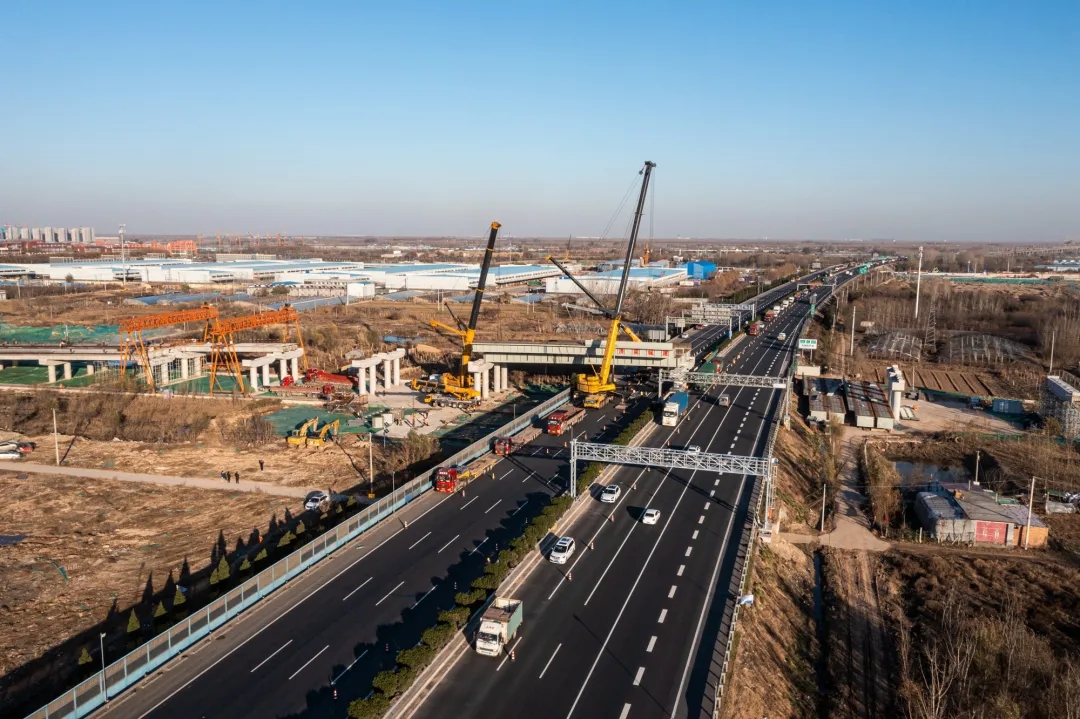 11月25日,歷時8小時施工作業,由建設集團受委托建設,集團所屬濟南城建集團有限公司第四分公司負責施工建設的濟南新舊動能轉換起步區智慧物流園區二期工程一標段西環路跨線橋鋼箱梁吊裝完成,順利跨越青銀高速。