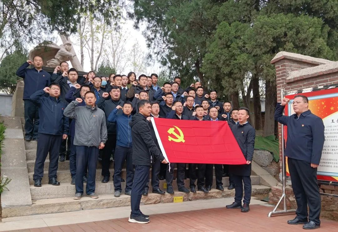 活動中,黨員代表向王士棟烈士敬獻花籃,黨員們瞻仰烈士紀念碑、深情緬懷烈士功績、寄托哀思并在中國共產黨黨旗的見證下,重溫入黨誓詞。