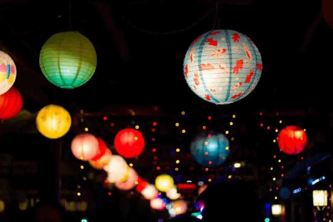 街頭巷尾,到處花團(tuán)錦簇,燈光搖曳。