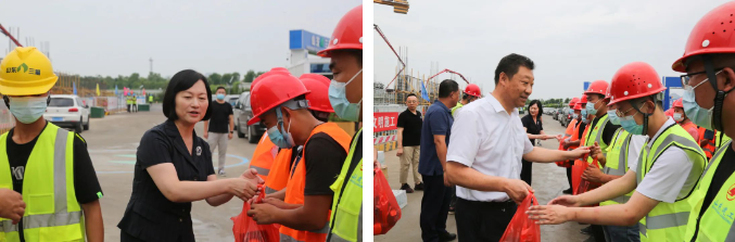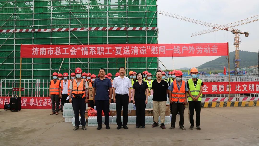 活動中,慰問人員將防暑降溫慰問品送到建設者手上,感謝他們為濟南建設所作出的貢獻,并叮囑大家勞逸結合,增強自我防護意識,避免高溫及疲勞作業,統籌抓好疫情防控、安全生產和項目建設工作。