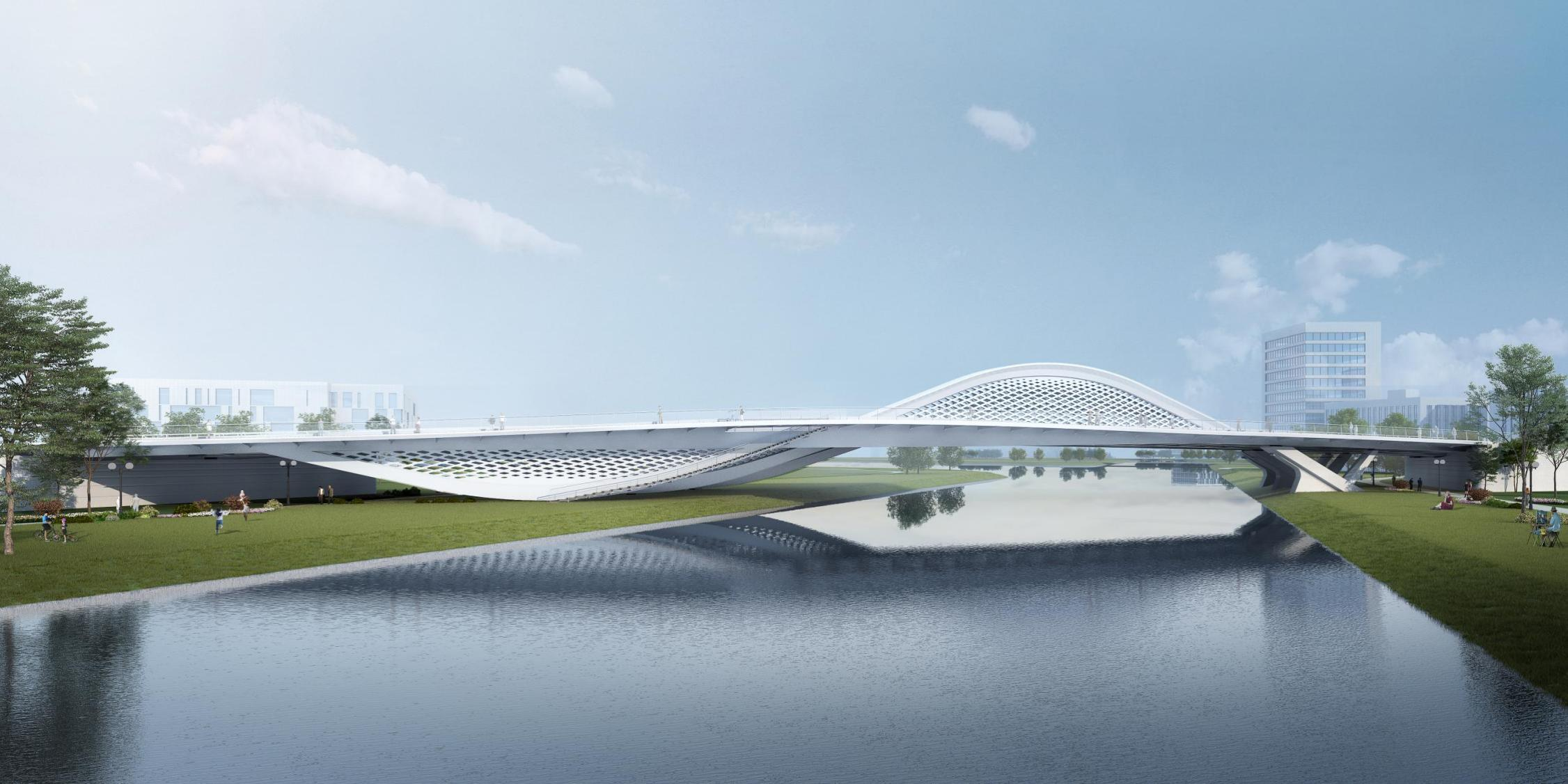 橫一路、橫二路大寺河橋作為起步區(qū)規(guī)劃的第一批景觀橋梁,由濟(jì)南城市建設(shè)集團(tuán)有限公司受委托建設(shè),兩座橋梁由世界著名橋梁設(shè)計(jì)師Marc MIMRAM先生主設(shè)計(jì),通過研究濟(jì)南的歷史和文化,以泉與太極這個(gè)設(shè)計(jì)為根基,將泉城的剛中有柔、柔中帶剛,與太極互為印證,力與美相結(jié)合,完成兩座景觀橋梁的設(shè)計(jì)。
