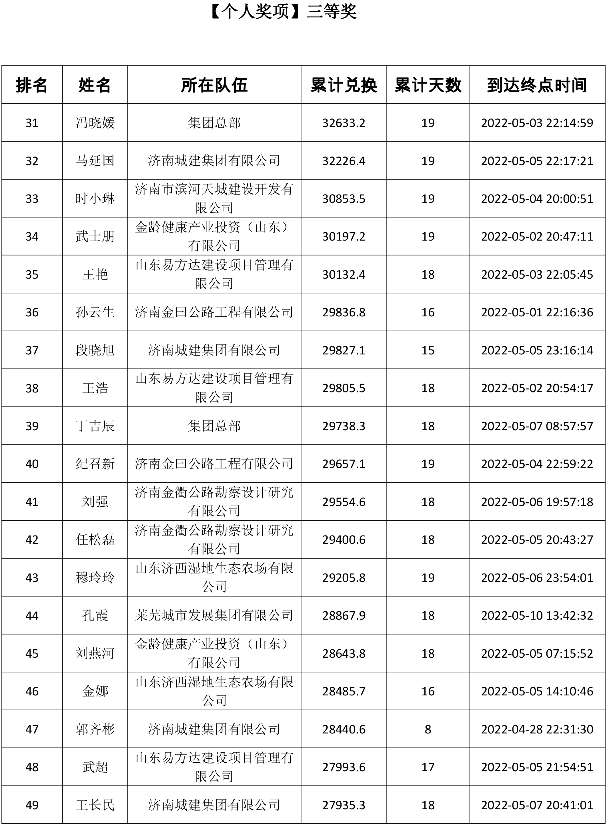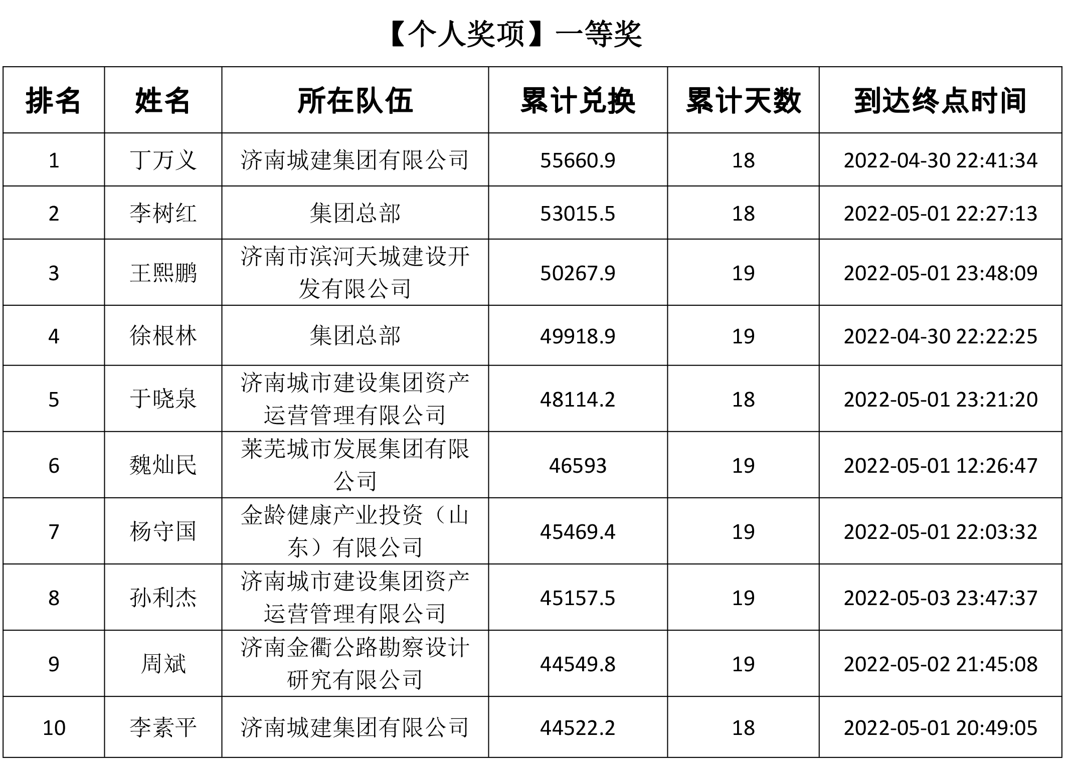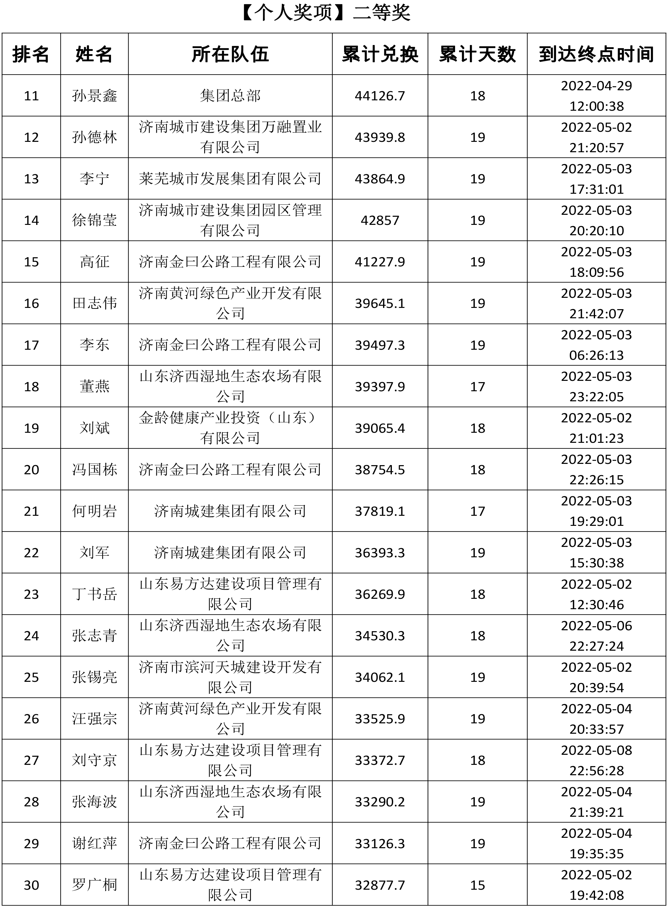 由共青團(tuán)濟(jì)南城市建設(shè)集團(tuán)有限公司委員會主辦,共青團(tuán)濟(jì)南金曰公路工程有限公司委員會、濟(jì)南新城文化傳媒有限公司承辦的“青春有夢 建設(shè)無疆”——職工線上健步走活動于5月13日正式落下帷幕。此次活動共持續(xù)19天,參與人數(shù)達(dá)1716人。