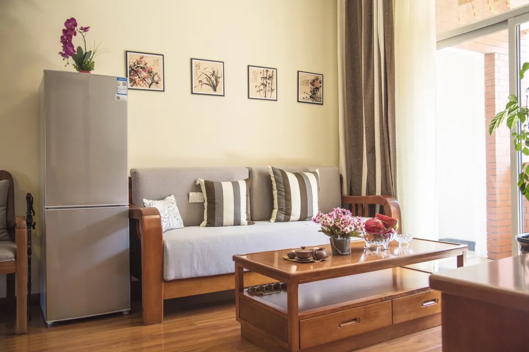 候鳥旅居區(qū)按照星級酒店服務(wù)標(biāo)準(zhǔn),設(shè)有套房、標(biāo)準(zhǔn)間和單人間,房間內(nèi)設(shè)施設(shè)備均采用適老化設(shè)計,支持短期入住,提供候鳥養(yǎng)老服務(wù)。