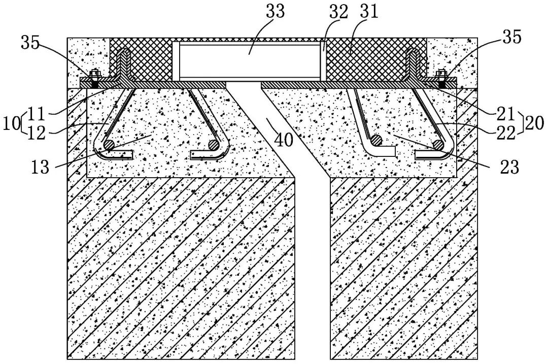 本發(fā)明專(zhuān)利用于解決現(xiàn)有的伸縮縫裝置結(jié)構(gòu)復(fù)雜、剛性不足、柔性不足等問(wèn)題。該裝置安裝在兩個(gè)橋面之間,包括安裝一部、安裝二部和設(shè)置在兩部之間的半剛性連接件,半剛性連接件整體為橡膠材質(zhì)的彈性體,在該彈性體內(nèi)部設(shè)置有若干沿順橋向設(shè)置的空腔,且在該空腔內(nèi)設(shè)置非粘合的抗彎部件,且抗彎部件在該空腔內(nèi)具有滑動(dòng)空間;該抗彎部件在伸縮方向和長(zhǎng)度方向上具有足夠高的剛度,使得車(chē)輛通過(guò)該彈性體時(shí)具有極高的抗壓剛度。該裝置可以全面覆蓋伸縮縫位置,具有使用壽命長(zhǎng)、免清潔、免維護(hù)的特點(diǎn)。