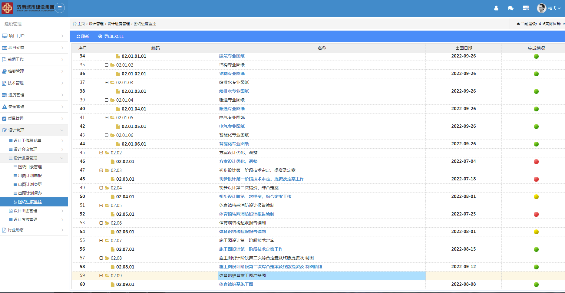 為進(jìn)一步強(qiáng)化設(shè)計(jì)源頭管理,克服設(shè)計(jì)過程環(huán)節(jié)多、線下管控難度較大的實(shí)際,工程四部OA信息平臺(tái)開發(fā)研制設(shè)計(jì)管理業(yè)務(wù)功能模塊并在黃河體育中心項(xiàng)目全面應(yīng)用。通過設(shè)計(jì)管理業(yè)務(wù)功能模塊,實(shí)現(xiàn)出圖計(jì)劃、圖紙上傳、分發(fā)簽收、圖紙會(huì)審、變更、圖紙文檔的統(tǒng)一編碼與存檔,有效提升設(shè)計(jì)管理中工作任務(wù)安排、接收及出圖計(jì)劃整體把控。