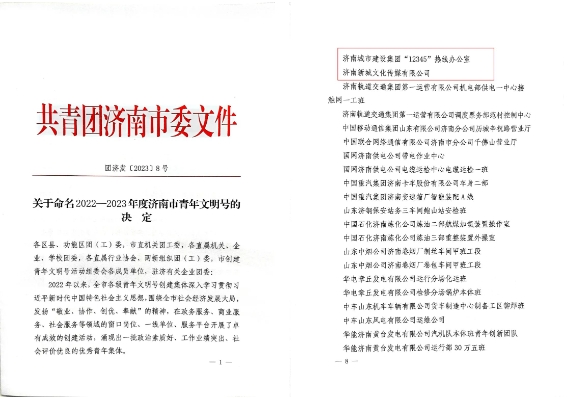 近日,共青團濟南市委印發(fā)了《關(guān)于命名2022-2023年度濟南市青年文明號的決定》,集團“12345”熱線辦公室、濟南新城文化傳媒有限公司兩家集體獲評2022-2023年度濟南市青年文明號。