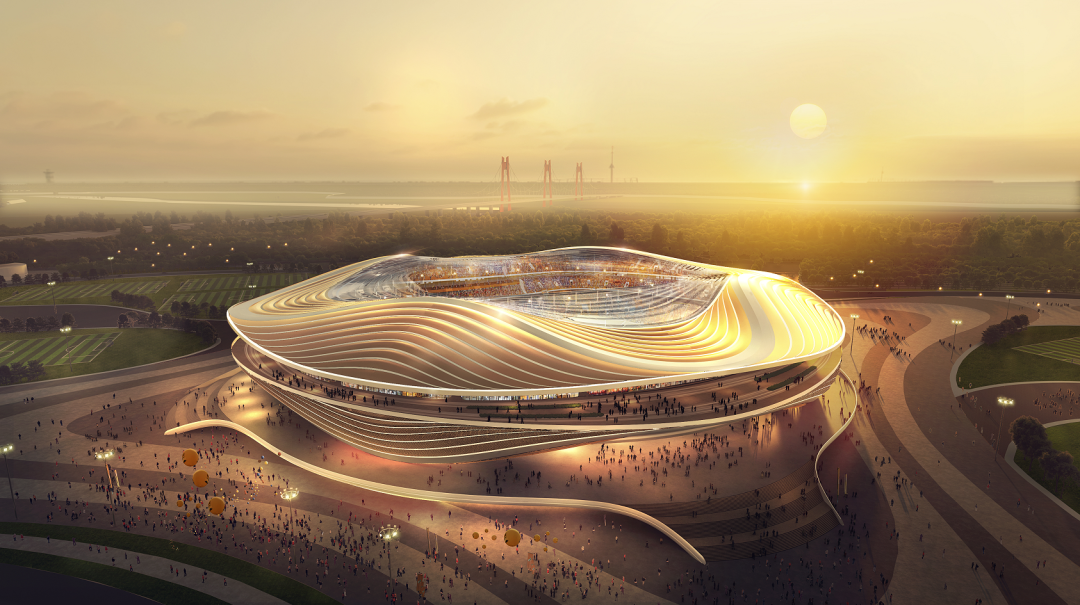 濟南新舊動能轉換起步區黃河體育及科技園區基礎設施一期工程位于濟南市起步區崔寨片區內,緊鄰黃河建設,北至鳳凰路、南至華河路、西至黃河大道、東至規劃路,包括專業足球場、體育館、游泳館及全民健身中心。其中,專業足球場總建筑面積約19.7萬平方米,地下1層,地上5層,建筑高度60米,場館外圈直徑達280米,索桁架最大懸挑長度約45米,總用鋼量2.34萬噸。建成后可容納6萬余人,是省內首座超大型專業足球場,國內最大的專業足球場之一,具備承辦世俱杯、亞洲杯等國際足聯、亞足聯的頂尖賽事能力。