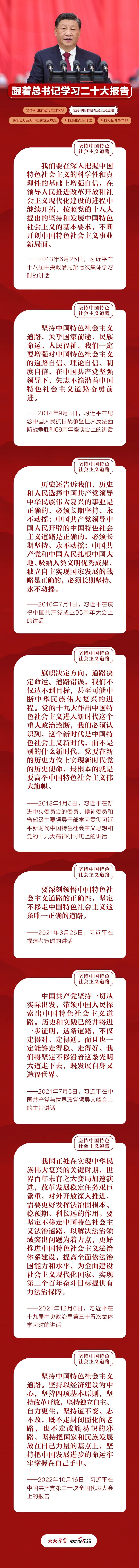 黨的十八大以來,在以習(xí)近平同志為核心的黨中央堅強(qiáng)領(lǐng)導(dǎo)下,我們以奮發(fā)有為的精神推動新時代中國特色社會主義不斷向前,推進(jìn)改革開放和社會主義現(xiàn)代化建設(shè)不斷深入,書寫了經(jīng)濟(jì)快速發(fā)展和社會長期穩(wěn)定兩大新篇章。歷史已經(jīng)并將繼續(xù)證明,中國特色社會主義道路不僅走得對、走得通,而且走得穩(wěn)、走得好。讓我們一起學(xué)習(xí)總書記重要論述,不斷增強(qiáng)中國特色社會主義道路自信,堅定不移走這條道路、與時俱進(jìn)拓展這條道路。
