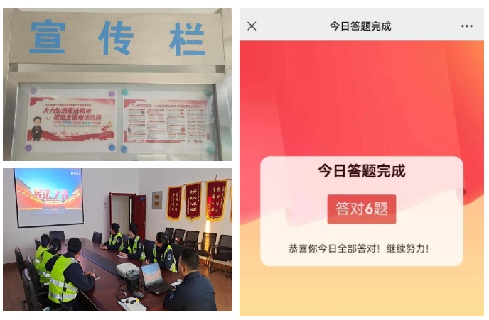 市政資產公司積極組織廣大干部職工每日參加中國普法“憲法宣傳周”法治宣傳答題活動,并在公司宣傳欄開展“大力弘揚憲法精神 推進全面依法治國”主題宣傳活動。公司各項目部組織共同觀看《憲法的精神 法治的力量——2023年度法治人物》專題節目,通過觀看節目,職工們深入了解了在法治戰線上堅守和付出的法治英雄和他們的感人事跡,在致敬英雄的過程中增強憲法意識、捍衛憲法尊嚴、弘揚憲法精神、釋放憲法偉力,營造尊法守法護法的社會氛圍,自覺做習近平法治思想的堅定信仰者、積極傳播者、模范實踐者。