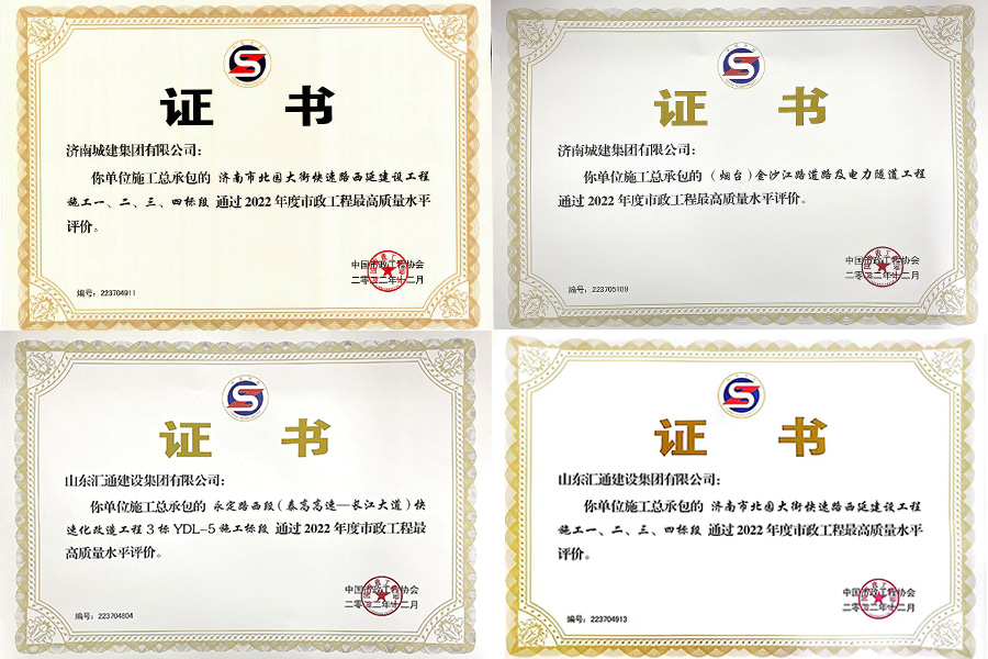 近日,中國市政工程協會公布2022年度通過市政工程最高質量水平評價工程名單,建設集團所屬濟南城建集團公司承建的濟南市北園大街快速路西延建設工程、(煙臺)金沙江路道路及電力隧道工程、永定路西段(泰高高速—長江大道)快速化改造工程獲得四項“2022年度市政工程最高質量水平評價”。