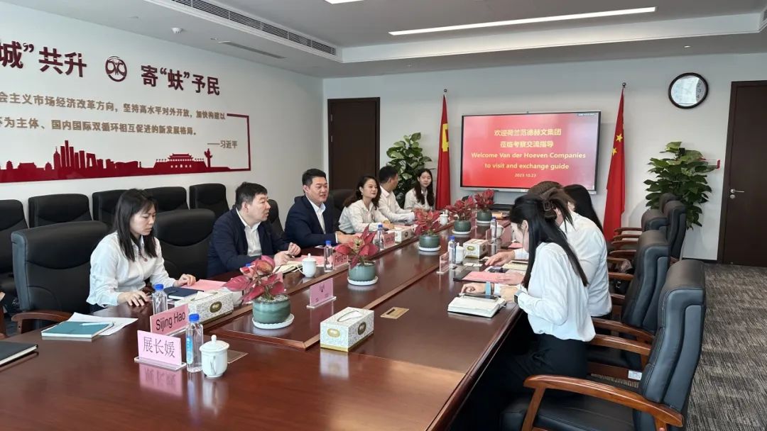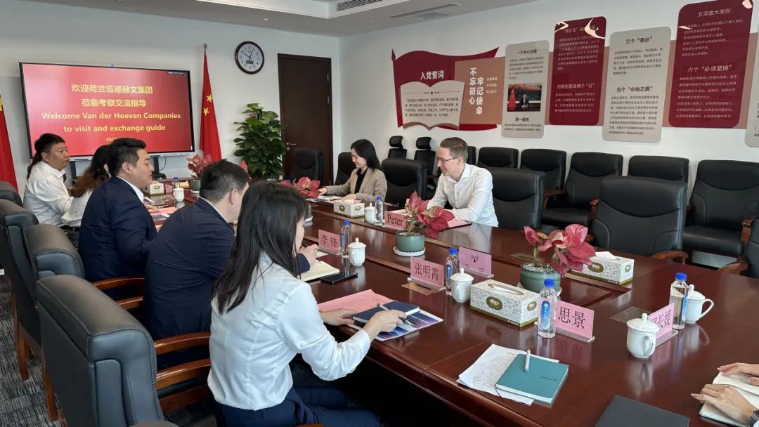 10月23日,荷蘭Van der Hoeven(范德赫文,簡稱VDH)集團考察團到訪城蚨國際貿易集團、濟西農業公司,就一站式智能溫室建設、先進設施農業及貿易業務進行座談交流,VDH集團中國分公司副董事長陳文娟、銷售總監Peter-Jan Snellink,建設集團所屬城蚨國際貿易集團公司、濟西農業公司相關負責同志參加活動。