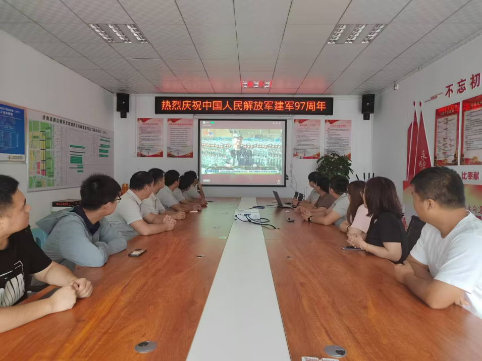 城建設計院、管片制造公司組織黨員干部到濟南戰役紀念館,緬懷先烈豐功偉績,傳承紅色基因,并重溫入黨誓詞。市政集團組織職工觀看慶祝建軍97周年直播相關內容。