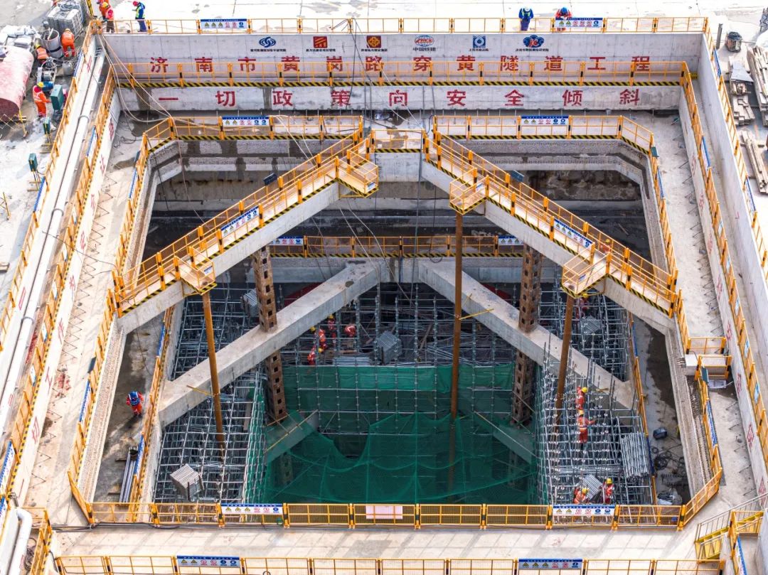 作為國內(nèi)水下最大直徑的盾構隧道的濟南市黃崗路穿黃隧道工程,目前正在開展北岸始發(fā)井、南岸接收井及機架段的開挖支護和結(jié)構工程的施工。其中北岸始發(fā)井主體結(jié)構施工,已完成70%,預計2024年5月份能完成頂板封頂工作;南岸接收井及明挖段圍護結(jié)構已施工完成,正在進行土方開挖及主體結(jié)構施工,預計2024年底能夠完成全部主體結(jié)構施工。同時,盾構機預計2024年5月份能夠下線、進場組裝,計劃年內(nèi)進行盾構始發(fā)。