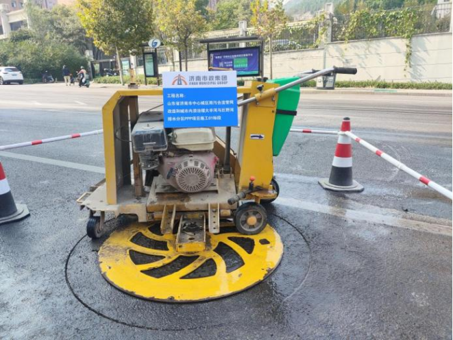 濟南市大辛河和巨野河排水分區雨污分流項目部積極使用井蓋自動割圓機,提升割縫的精度和效率,開啟智能機械化施工。