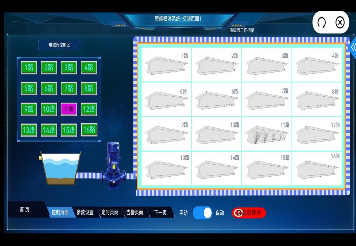 該系統在梁場建設時提前在臺座中預埋噴淋管道,管道與自動供儲水后臺相連通。當T梁模板拆除后,可通過手機APP控制噴淋系統對T梁的腹板和翼板進行全面均勻噴灑,確保T梁養護無死角,同時通過手機應用控制養護操作,隨時隨地一鍵啟動或關閉,必要時選擇自動化模式,實現T梁24小時不間斷養護。
