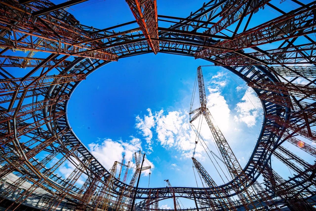 10月21日,隨著最后一榀百噸鋼桁架精準入位,由濟南城市建設集團受委托建設的黃河體育中心專業足球場項目屋蓋鋼結構合攏,標志著屋蓋鋼結構主桁架完成,正式進入屋蓋鋼結構網架施工階段。