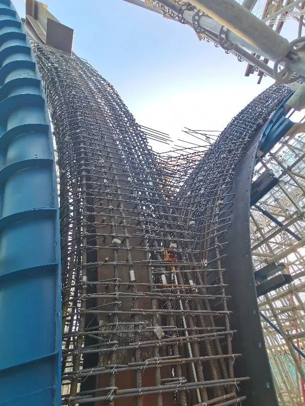 實現深化設計目標后,如何將設計轉換為工程實體,完美實現設計意圖是接下來的重頭戲。項目部組建“樹杈柱”施工攻堅團隊,對鋼模板如何安裝、加固、拆模,鋼筋如何加工、連接、分段、插筋,混凝土如何澆筑等一系列問題進行深入細致的研究,制定了一套科學、可行的施工方案,研究出了一套復雜異形混凝土柱施工工法,提高超復雜異形混凝土柱鋼模板安裝一次合格率,形成多項QC成果,確保開花柱施工質量可控。