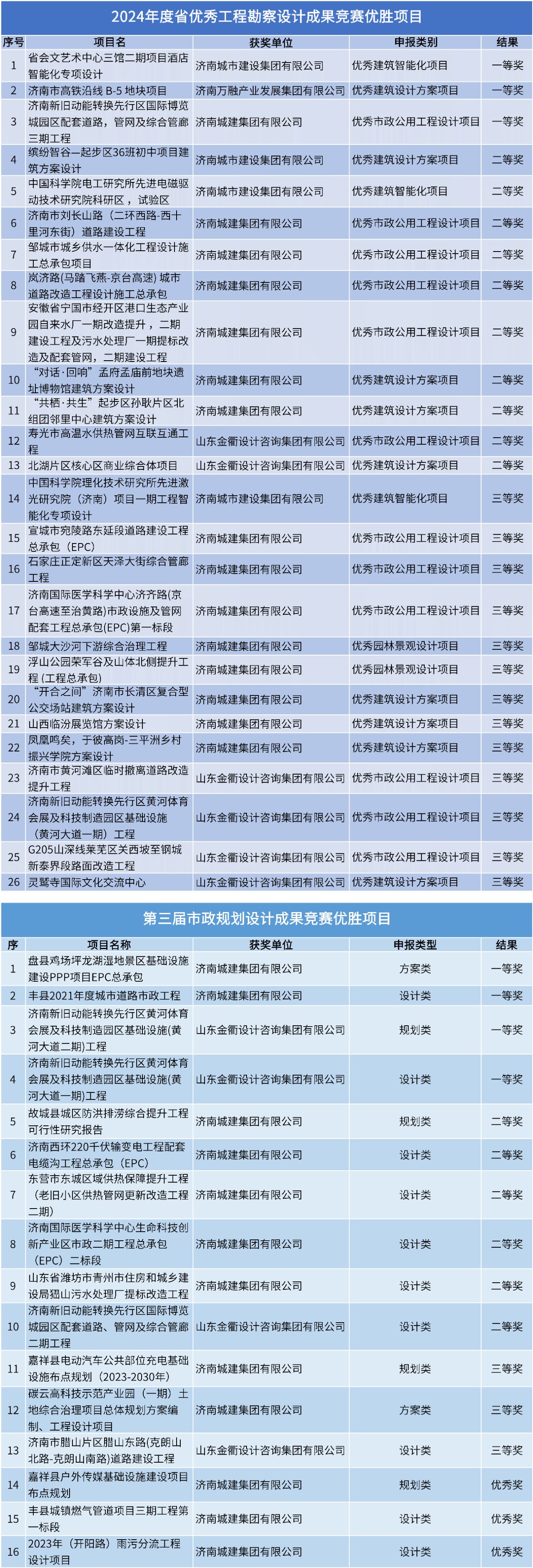 近日,建設(shè)集團(tuán)及其所屬濟(jì)南萬融產(chǎn)業(yè)發(fā)展集團(tuán)有限公司、濟(jì)南城建集團(tuán)有限公司、山東金衢設(shè)計(jì)咨詢集團(tuán)有限公司在2024年度優(yōu)秀工程勘察設(shè)計(jì)成果競(jìng)賽和第三屆市政規(guī)劃設(shè)計(jì)成果競(jìng)賽兩項(xiàng)省級(jí)賽事中斬獲佳績。