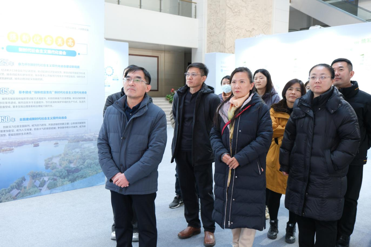 活動中,全體人員有序參觀了“錨定目標 高點定位”“統籌協調 優化格局”“開放創新 綠色轉型”“人民至上 品質生活”“文化名城 泉城魅力”“數字賦能 保障實施”六個篇章。通過豐富的圖片、圖表和視頻展示,大家對濟南市“山東省省會,黃河流域重要的中心城市,國家歷史文化名城,全國性綜合交通樞紐城市”的城市性質和“北方先進制造業基地、北方商貿物流中心、區域性科技創新高地”的功能定位有了全方位、深層次的理解與感悟。