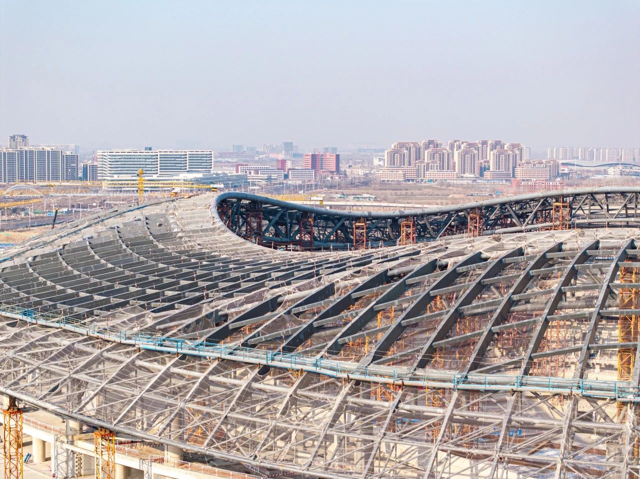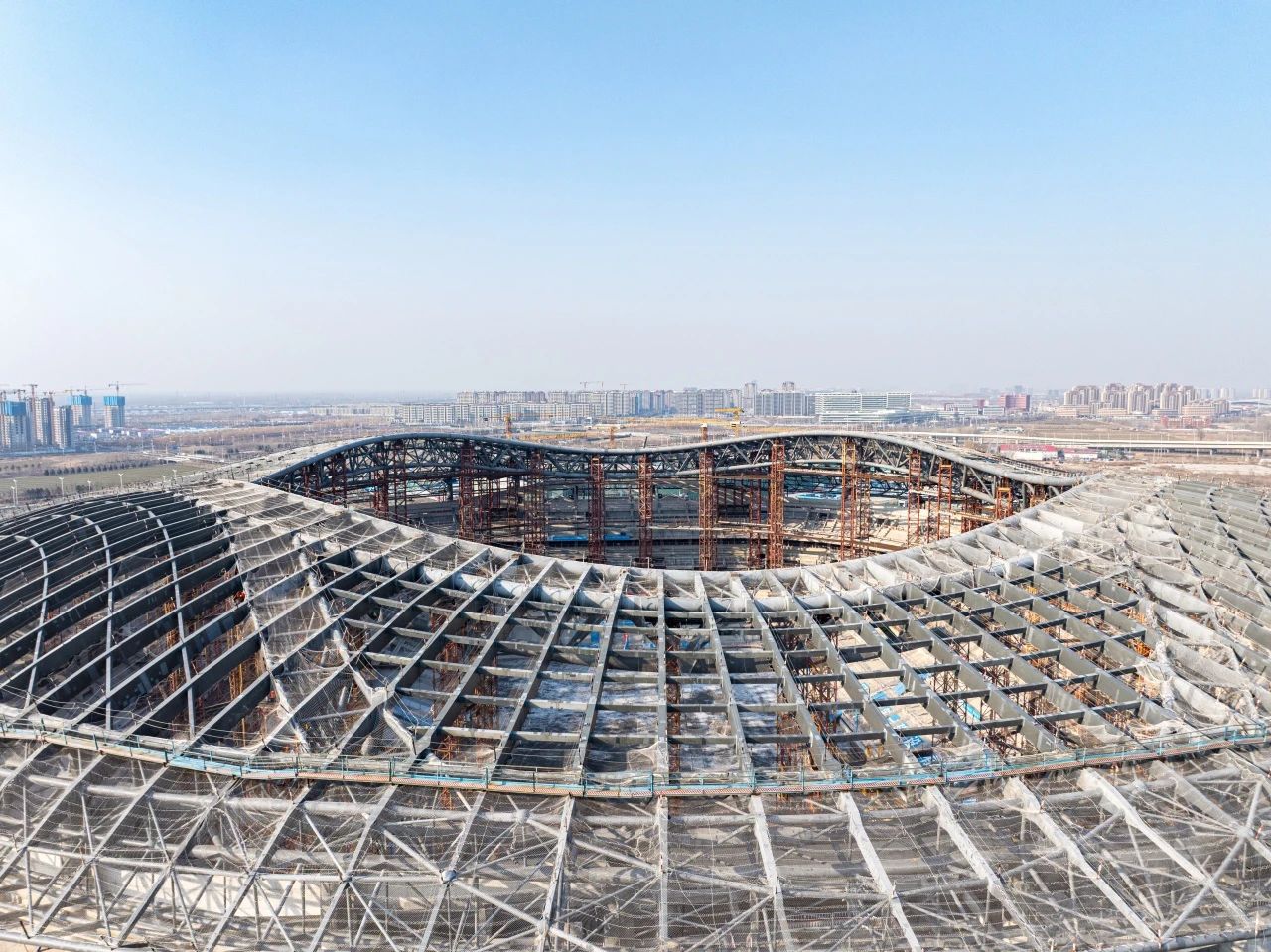 近日,由濟南城市建設集團受委托建設的濟南黃河體育中心足球場項目屋蓋鋼結構支撐體系卸載工作完成,項目全面完成鋼結構施工,下一步將進入索膜結構、幕墻和金屬屋面施工階段。按照施工安排,該項目預計2026年12月達到竣工驗收條件。