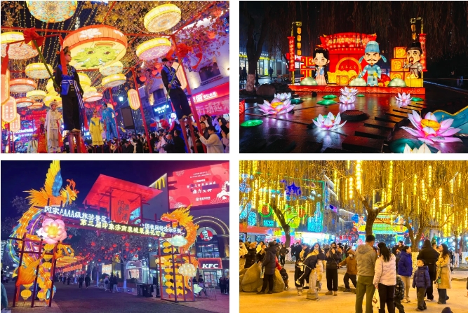 2025年元旦,印象濟南·泉世界推出“第四屆印象濟南‘泉城最美花燈會’”,打造“鯉魚躍龍門”巨型燈組,為游客帶來了一場視覺盛宴,活動將一直持續(xù)到3月1日(農歷二月二),春節(jié)期間街區(qū)將開展民俗扮玩、非遺市集、花果糖茶年貨大集展銷活動,景區(qū)內百店同慶,推出特色新品、美食優(yōu)惠、購物抽獎等多樣福利,讓廣大市民游客在元旦、春節(jié)、元宵節(jié)期間能夠盡情游玩賞燈、打卡互動、闔家團圓、朋友聚會,共同度過歡樂祥和的節(jié)日時光。