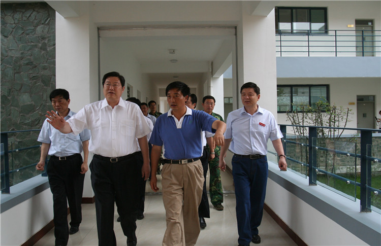 2009年6月,時任山東省委副書記、省長姜大明(右二)等省市領導一行到擂鼓鎮視察援建工作。